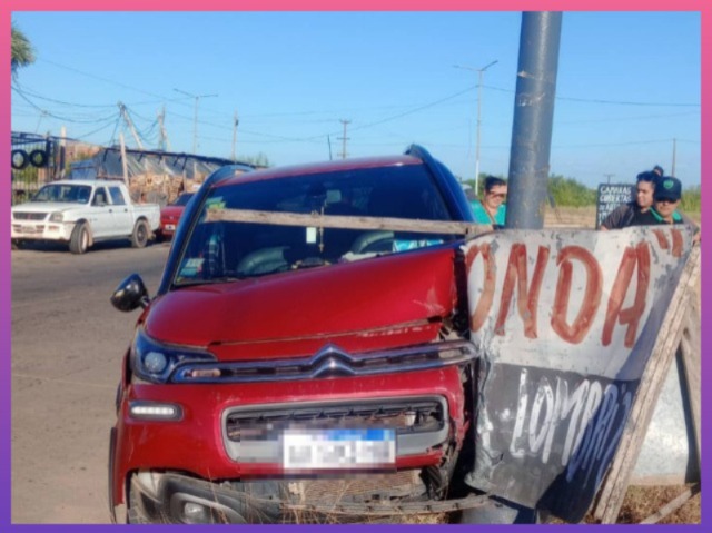 De acuerdo a la versión brindada, el conductor habría perdido el control del rodado mientras utilizaba el teléfono celular, lo que derivó en la colisión contra la estructura de iluminación ubicada en la rotonda de acceso a la localidad.