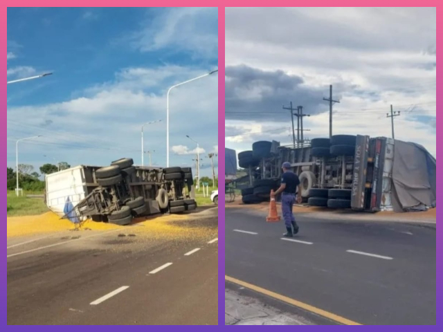 El siniestro se registró alrededor de las 19, cuando un camión Iveco blanco, conducido por un hombre de 34 años, perdió el control y terminó volcando sobre la cinta asfáltica. Como consecuencia, gran parte de la carga de maíz en granos quedó desparramada sobre la calzada.