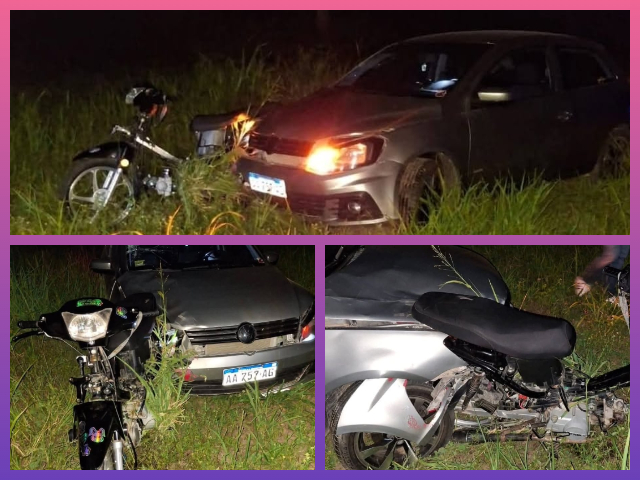 Por causas que son materia de investigación, colisionaron un Volkswagen Gol Trend gris oscuro, conducido por un hombre de 30 años domiciliado en Presidencia Roque Sáenz Peña, y una motocicleta Honda 110cc negra, en la que se desplazaban dos jóvenes con domicilio en Corzuela.