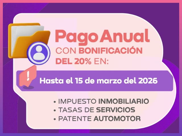 La administración municipal anunció la prórroga del Pago Anual Anticipado correspondiente al período fiscal 2026, que permitirá a los contribuyentes acceder a un 20% de descuento en distintos tributos municipales. La nueva fecha límite para adherirse al beneficio será el 15 de marzo de 2026.
