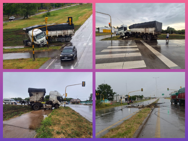 Alrededor de las 16:20, el sistema de la Division Videovigilancia detectó el momento en que un camión marca Iveco con acoplado, que circulaba por el carril ascendente, perdió el control. Según manifestó el conductor —un hombre de 47 años oriundo de Corrientes—, el estado del asfalto producto de las lluvias provocó que el transporte derrapara.