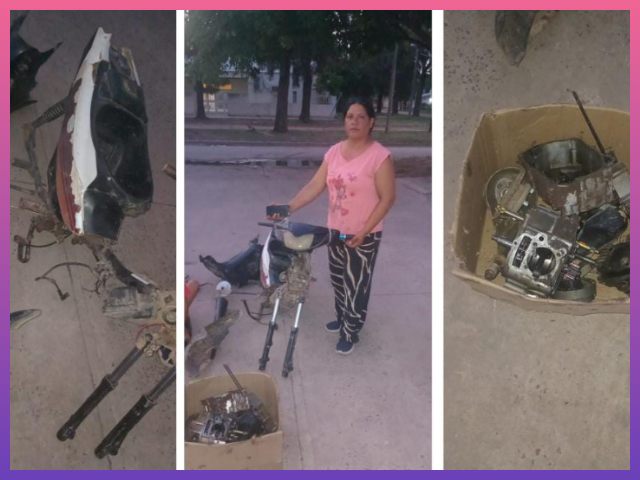 Tras tareas investigativas, los efectivos tomaron conocimiento de que un rodado de similares características estaría en un domicilio del barrio Colón. Al constituirse en el lugar y con autorización de una mujer de 23 años, constataron en un habitáculo deshabitado lindante a la vivienda una motocicleta Zanella ZB 110cc blanca y negra, desmantelada, junto a varias motopartes en una caja.