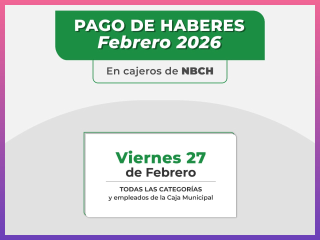 25-Feb-26 La Municipalidad de Resistencia informa que el viernes 27 de febrero pagará los haberes correspondientes al corriente mes a empleados de todas las categorías y a los de la Caja Municipal.