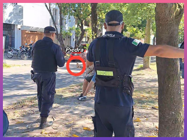 Arrojó una piedra  que impactó en la pierna de otro agente.