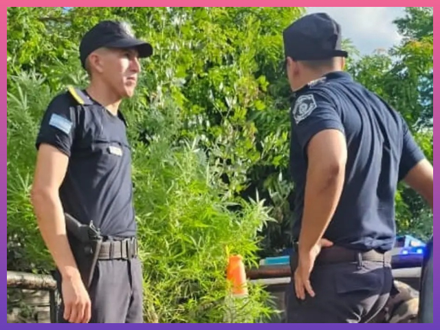 El allanamiento tuvo lugar en un domicilio del Barrio 16 de Julio, donde encontraron dos plantas de importante tamaño, con características de cannabis sativa. Tras realizar el test orientativo de rigor, se confirmó que se trataba de marihuana.
