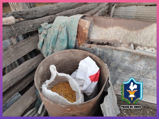 Más tarde, al recorrer otro campo de la misma firma, denominado “El Mangrullo”, se halló en cercanías de un corral porcino una bolsa de nylon con maíz de similares características al denunciado como sustraído.