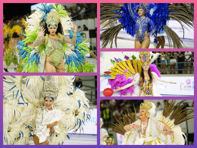 La apertura estuvo a cargo de Kamandukahia, que aportó frescura y ritmo desde las 22. Luego fue el turno de Sambanda, que mantuvo la energía en alto. Cerca de la medianoche, Copacabana desplegó su propuesta temática, dando paso al colorido espectáculo de Samba Show y la elegancia de Arandú Beleza.