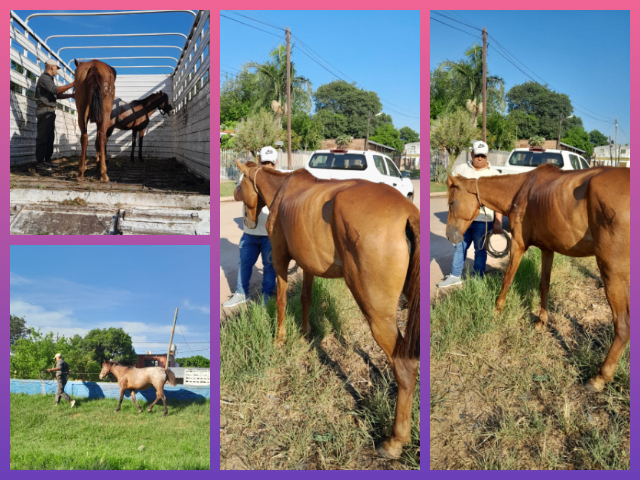 Por medio de la denuncia vecinal se tomó conocimiento y se constató la presencia de dos yeguas sueltas, en el barrio de Juan de Garay, más precisamente en avenida Moreno al 3000. Una de ellas presentaba lesiones y se le brindó atención veterinaria.