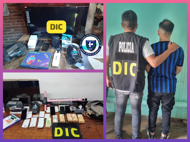 Entre los objetos incautados se encuentran televisores, varios celulares de distintas marcas, un monopatín eléctrico con su cargador, un parlante, una mochila, una gorra, accesorios para relojes, una cartuchera de perfume, tickets de compra de celulares y una suma importante de dinero en efectivo.
