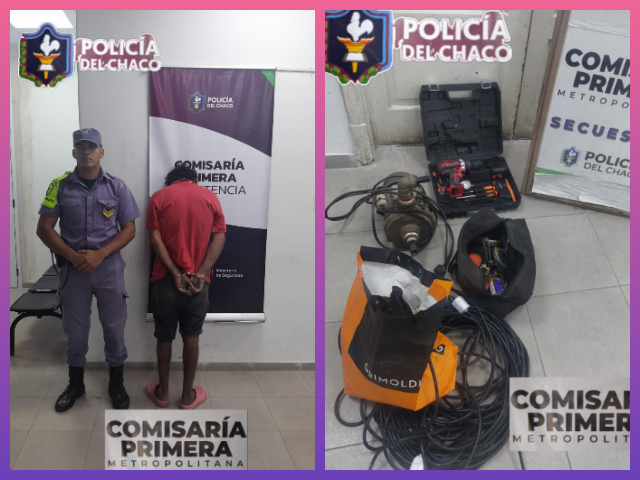 En su poder secuestraron una bomba de agua, un destornillador eléctrico, un cable de aproximadamente 100 metros y una amoladora, entre otros elementos.