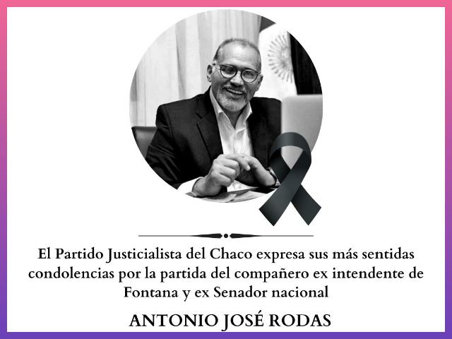 El PJ Chaco acompaña en este momento de dolor a su familia, amigos y compañeros, y despide con respeto y gratitud a un dirigente que supo honrar la militancia y el servicio público.