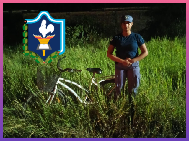 Todo comenzó cerca de las 23:10, cuando personal que realizaba recorridas en el marco del operativo “Patrullaje Motorizado Lince”, lograron hallar abandonada en zona boscosa, una bicicleta tipo mujer, de color blanco, que había sido sustraída horas antes, en calle 25 de Mayo.