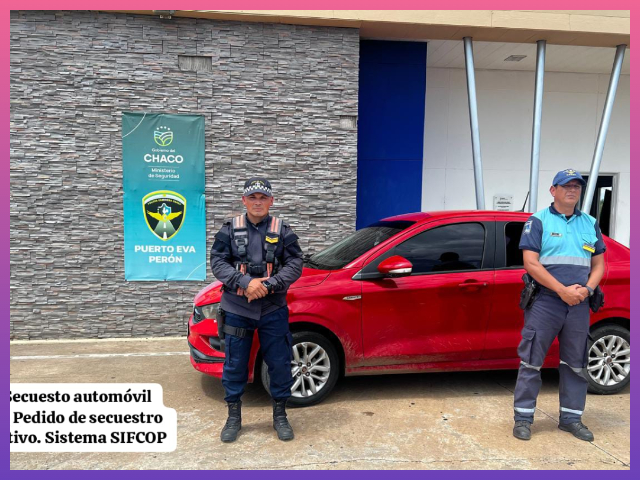 Esta mañana, personal de la División Patrulla Vial secuestró un automóvil durante un control realizado este domingo en el Puesto Caminero de Puerto Eva Perón, luego de una solicitud de colaboración de efectivos de Formosa.