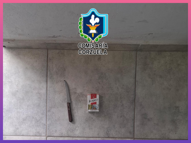 Tras tomar conocimiento de lo sucedido, personal de la Comisaría de Corzuela comenzó a realizar tareas investigativas, logró momentos más tarde dar con este ciudadano y secuestró un cuchillo tipo tramontina de 25 centímetros aproximadamente y un paquete de cigarrillos.