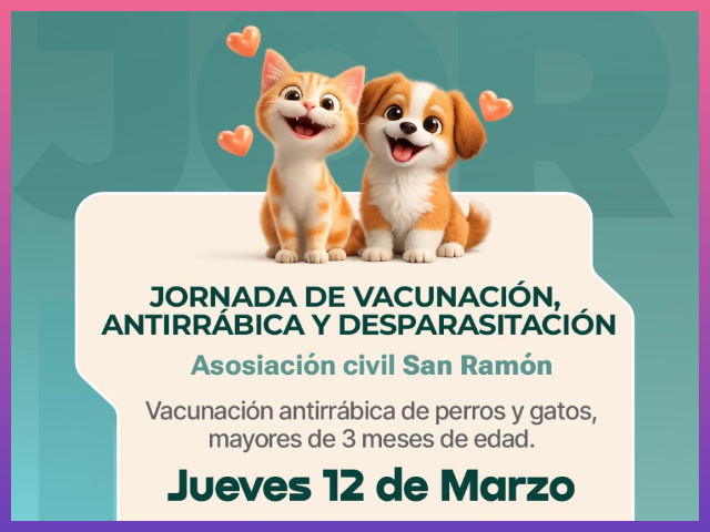 La jornada se realizará a partir de las 9 horas en el barrio La Toma, en la intersección de las calles Misiones y Joaquín V. González, donde el equipo municipal brindará atención a las mascotas de los vecinos de la zona.