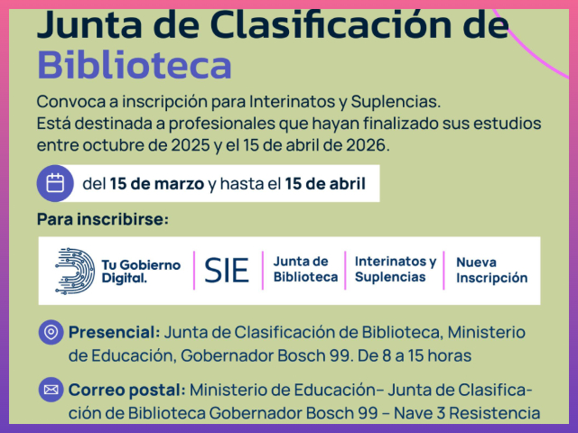 CHACO: Educación: Abren Inscripción Extraordinaria Para Interinatos Y Suplencias De Docentes Bibliotecarios