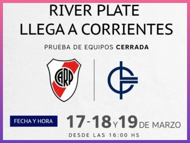 A través de un trabajo coordinado por la Liga Correntina de Fútbol (LCF), el Club Atlético River Plate llegará a Corrientes para realizar una prueba de jugadores para los clubes que forman parte de la Liga.