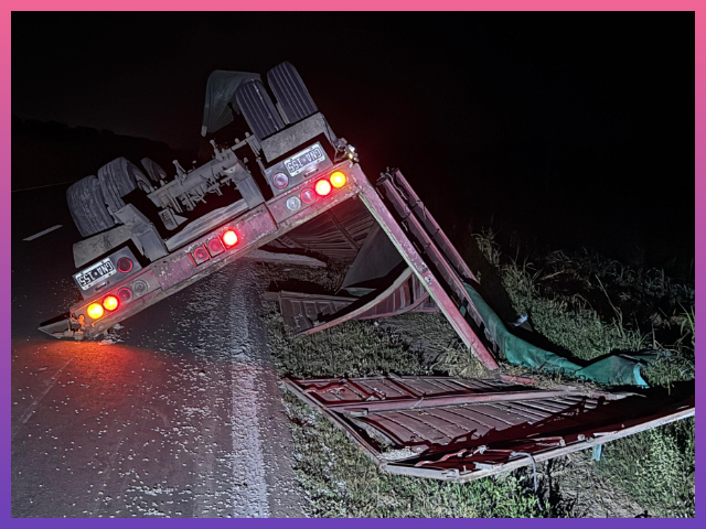 El conductor de un camión Volkswagen con acoplado perdió el control del rodado, provocando el vuelco del acoplado que transportaba semillas de algodón. A raíz del hecho, la carga quedó esparcida sobre la calzada, por lo que el personal policial reguló el tránsito al quedar neutralizado uno de los carriles.