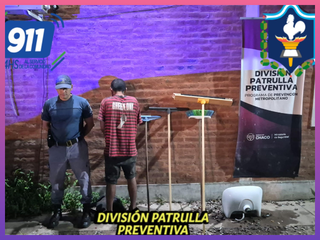 El procedimiento se realizó durante recorridas preventivas, cuando los agentes interceptaron al ciudadano que transportaba diversos elementos, entre ellos una bacha de porcelana con canilla, escobas, escobillones y lampazos, sin poder justificar su procedencia, por lo que se procedió al secuestro de los mismos.