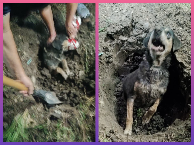 Con la utilización de palas y trabajo manual, el personal logró extraer al animal con vida. Posteriormente, una vecina se hizo cargo del can para brindarle los cuidados correspondientes.