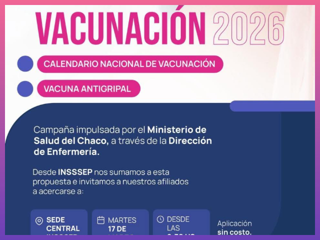 En este marco, el Instituto de Seguridad Social, Seguros y Préstamos (INSSSEP) acompaña la iniciativa e invita a sus afiliados a acercarse a la sede central para completar sus esquemas de vacunación. La jornada se realizará este martes 17 de marzo a partir de las 8:30 horas.