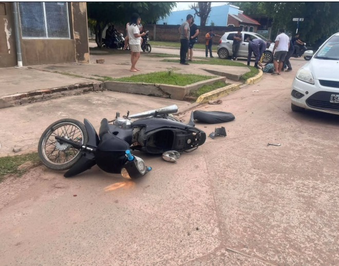 El siniestro involucró a un automóvil Ford Focus blanco, conducido por una mujer de 43 años, y una motocicleta Corven 110 cc negra guiada por un hombre de 73 años.