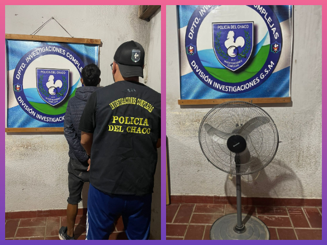 Tras tareas investigativas, personal de la División Investigaciones logró establecer la identidad del presunto autor. Posteriormente fue localizado en la vía pública, donde los efectivos procedieron a su conducción y al secuestro de un ventilador de pie vinculado a la causa.