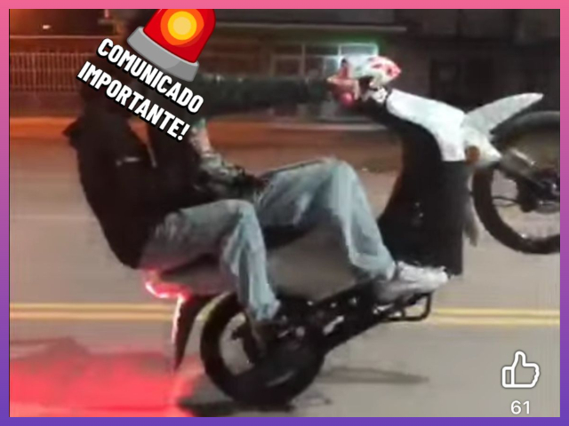 En esta oportunidad, un nuevo material permitió identificar a un menor de 17 años, quien fue captado conduciendo una motocicleta blanca acompañado por una joven, realizando una maniobra peligrosa conocida como “willy”.