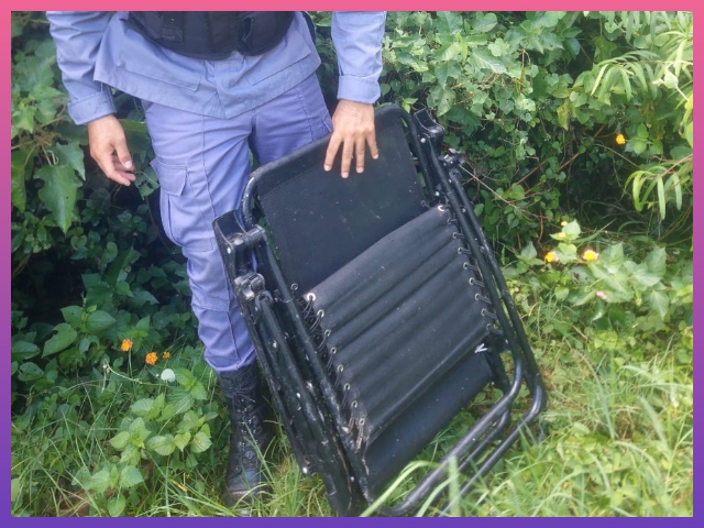 A partir de averiguaciones, los agentes tomaron conocimiento de que dos sujetos habrían ingresado a un monte cercano con objetos, por lo que realizaron un rastrillaje, logrando hallar una de las reposeras oculta entre la vegetación.