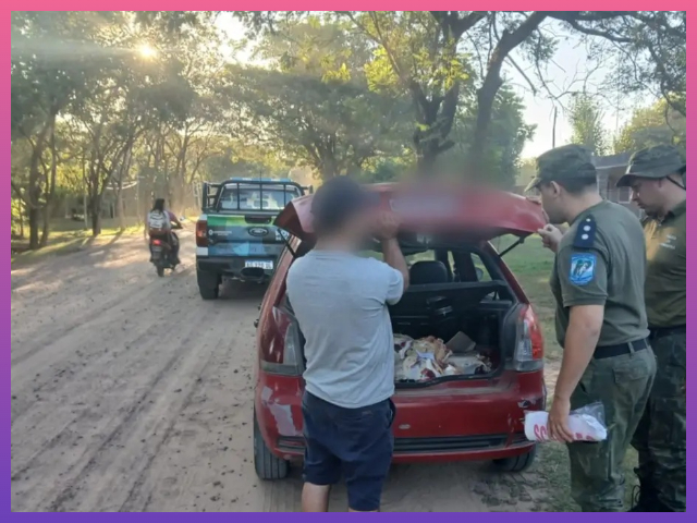 El procedimiento comenzó cuando los efectivos patrullaban la Ruta Provincial N° 3 y divisaron a un hombre cargando piezas de carne en el baúl de un automóvil. Ante la sospecha de una faena clandestina, los agentes montaron una vigilancia discreta y esperaron a que el vehículo iniciara su marcha hacia la Ruta Nacional 12 para interceptarlo.