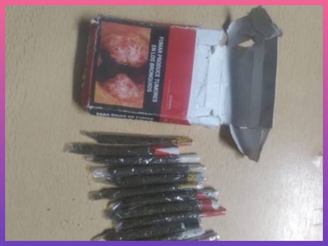Con la premura del caso los efectivos avanzaron con el protocolo del procedimiento, que les permitió hallar dentro de sus prendas un paquete de cigarrillos con 20 envoltorios de armado casero con fuerte olor a estupefacientes. Frente al hecho, solicitaron la colaboración del personal especializado de la Dirección General de Drogas Peligrosas y Crimen Organizado quienes confirmaron mediante el narcotest que se trataba de marihuana, con un peso total de 13,4 gramos.