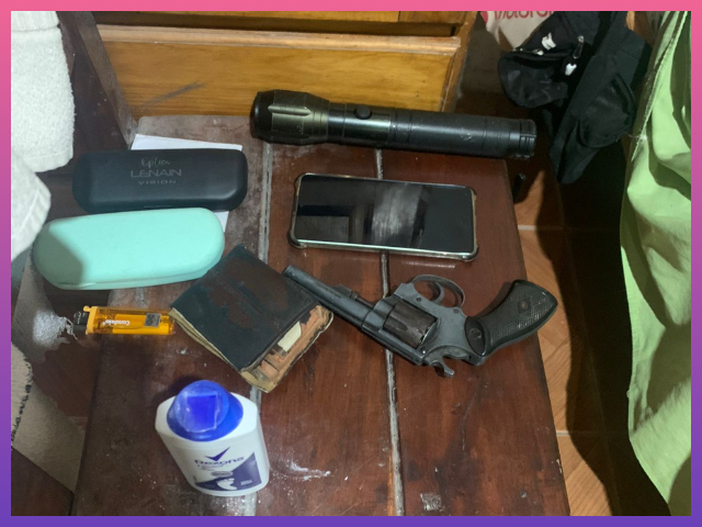 Posteriormente, el propietario del lugar hizo entrega voluntaria de un revólver calibre 22, junto a nueve cartuchos del mismo calibre y una vaina servida, elementos que fueron secuestrados por el personal interviniente.