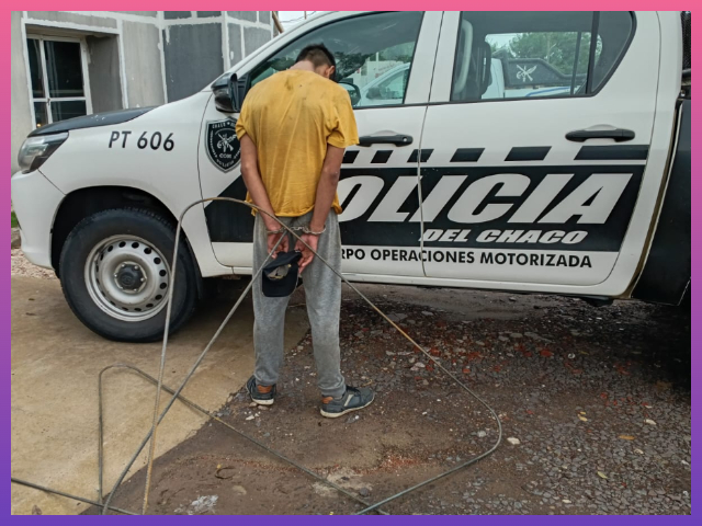 El hecho se originó alrededor de las 16, cuando una vecina de 79 años alertó a los agentes sobre la presencia de dos sujetos en la zona de avenida Sarmiento al 500. En el relato de la mujer, uno de los individuos oficiaba de “campana” mientras el otro saltaba el muro de una obra para sustraer barras de hierro, dándose luego a la fuga por la calle Saavedra.