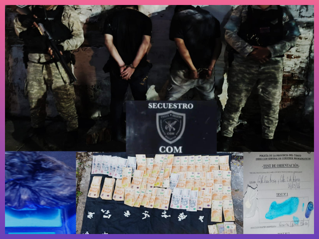 Durante la intervención, se procedió al secuestro de un total de 64 envoltorios que contenían cocaína, con un peso de 20,2 gramos, además de la suma de 120.100 pesos en efectivo, dos teléfonos celulares y una motocicleta tipo 110 cc.
