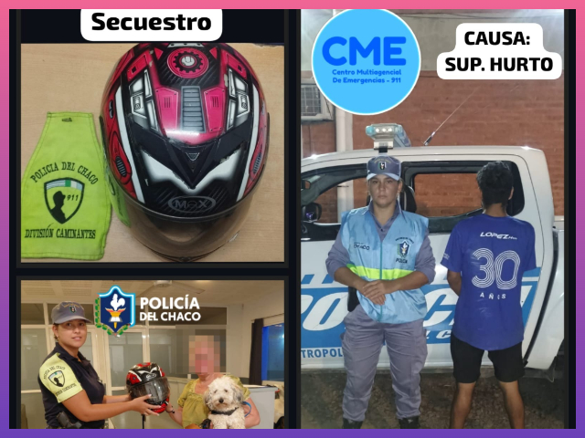 Personal de la Policía del Chaco demoró a un hombre de 32 años en la ciudad de Resistencia, acusado de sustraer un casco desde una motocicleta estacionada.