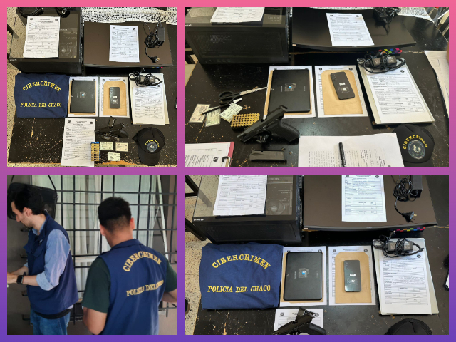 Como resultado de los operativos, los agentes secuestraron varios dispositivos electrónicos considerados de interés para la causa, entre ellos teléfonos celulares, notebooks, una tablet, equipos informáticos de escritorio y soportes de almacenamiento digital. Asimismo, en uno de los domicilios procedieron al secuestro de un arma de fuego tipo pistola calibre 9 milímetros, con cargadores y municiones, además de documentación vinculada a su tenencia.