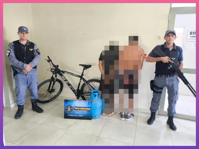 A las 7:20 los uniformados que se encontraban realizando patrullajes rutinarios, al transitar por el barrio Aipo, avistaron a dos sujetos llevando una bicicleta y un tubo de gas. Estos al notar la presencia policial aceleraron su marcha, lo que llamo la atención de los Agentes.