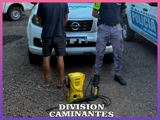 Cerca de las 8:30, los agentes de la división Caminantes vieron a un hombre de 39 años que circulaba con una hidrolavadora por calle García Merou al 800, aproximadamente, Resistencia. El ciudadano no pudo explicar la procedencia del artefacto y se lo incautaron.