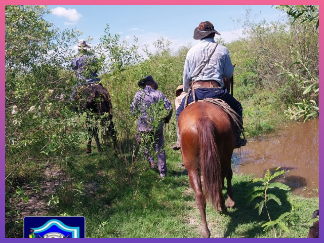 En el lugar hallaron huellas que los condicían hacia la zona de monte hacia el cardinal sur, las siguieron y luego de recorrer por más de 7 kilómetros hallaron el animal tambeado a un árbol. Constataron que las características coincidían con la del animal denunciado.