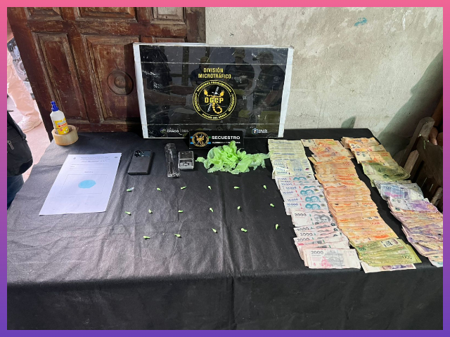 Durante la diligencia se incautaron 17 envoltorios tipo “bochitas” con cocaína, con un peso total de 1,4 gramos, además de una balanza digital, un teléfono celular, un cuchillo con restos de sustancia y recortes de polietileno, junto a $630.800 en efectivo.