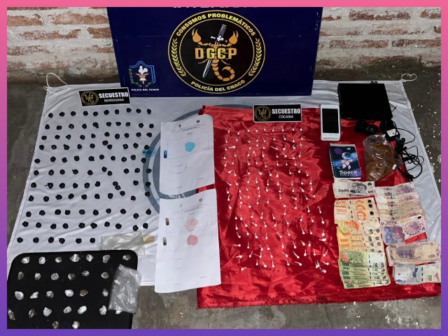 Efectivos de la División Microtráfico Interior realizaron un allanamiento en una vivienda señalada como presunto punto de venta de estupefacientes en Presidencia Roque Sáenz Peña, donde secuestraron drogas, dinero en efectivo y otros elementos vinculados a la actividad ilícita.