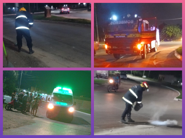 De acuerdo al informe brindado por el cuartel, el llamado de alerta se recibió a las 20:40, cuando un ciudadano informó sobre la presencia de una importante cantidad de aceite y gasoil sobre la calzada, presuntamente derramados por un camión que habría circulado por la zona.