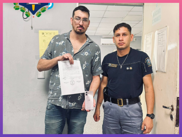 Con los datos físicos y las características del vehículo aportados por la víctima, una patrulla inició una recorrida por las inmediaciones. Minutos después, en la intersección de las calles 12 y 17 del Barrio Ensanche Sur, los agentes divisaron a un sujeto que coincidía con la descripción. Al ser interceptado, el joven exhibió entre sus pertenencias dos dispositivos, siendo uno de ellos el Motorola G40 rosa denunciado como robado.