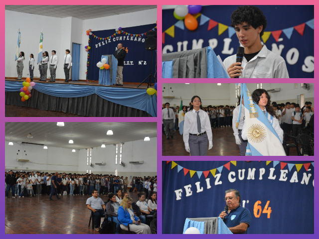 La Escuela de Educación Técnica N.º 2 “Gral. José de San Martín” celebró su 64° aniversario con emotivos actos realizados el último viernes en sus turnos mañana y tarde, reuniendo a directivos, docentes, estudiantes y exalumnos.