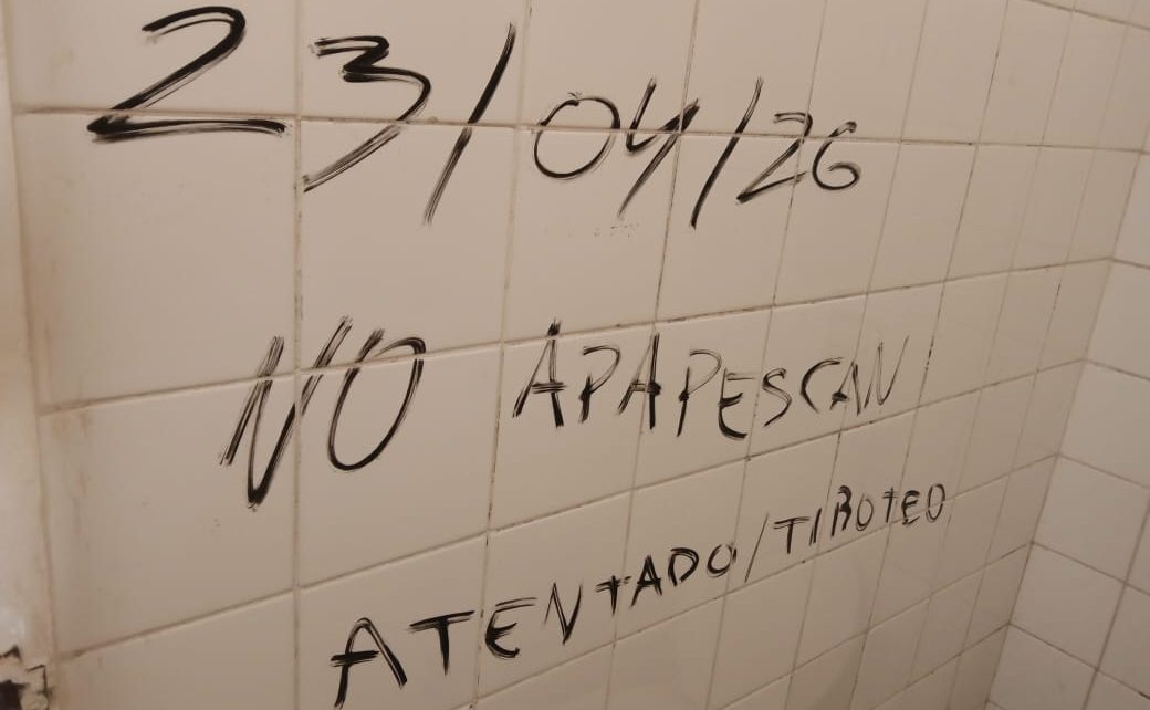 Un chico de primer año fue señalado como el sospechoso después de haber entrado al aula diciendo que “se iba a armar una tiroteada”, pero confesó que solo fue un chiste y que no había escrito el mensaje en la pared del baño. Por lo pronto, los agentes borraron el mensaje de la pared y prosiguen con la investigación para saber qué alumno fue el responsable.