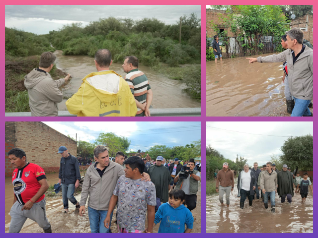 El mandatario provincial estuvo acompañado por ministros del gabinete y legisladores provinciales, en una recorrida por sectores anegados donde el agua mantiene aisladas a familias, complica la circulación y genera una situación crítica en distintos puntos de la localidad. “Estamos presentes en el lugar, acompañando a cada familia que hoy está atravesando un momento muy difícil. La prioridad es asistir, contener y dar respuestas concretas, luego continuamos hacia otras localidades”, expresó el gobernador.