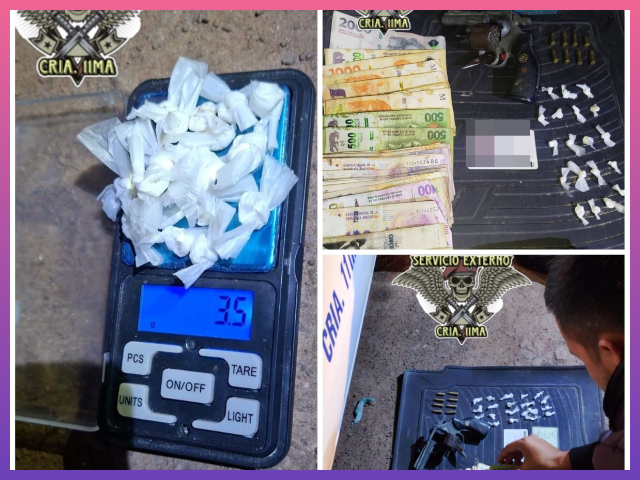 Asimismo, se detectaron 19 envoltorios de polietileno tipo “bochitas” con sustancia blanquecina. Personal del Departamento Drogas Peligrosas realizó las pericias correspondientes, determinando un pesaje total de 3,5 gramos con resultado positivo para cocaína, procediéndose al secuestro de los elementos ante testigos hábiles.