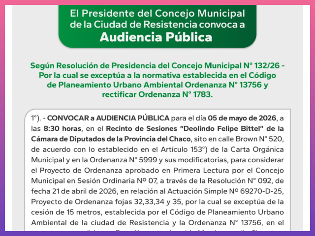 RESISTENCIA: El 5 De Mayo Habrá Una Audiencia Pública Del Concejo Municipal