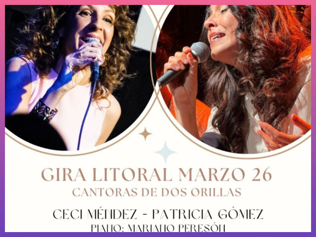 13-Mar-26 Este sábado 14 de marzo a las 21:30, llega al Centro Cultural Alternativo (Santa María de Oro 471) del Instituto de Cultura del Chaco, el espectáculo Cantoras de dos orillas, de Ceci Méndez (Buenos Aires) y Patricia Gómez (Reconquista). Las acompañará el pianista Mariano Peresón y se sumará Luli Maidana como invitada especial. Las entradas cuestan $10.000 y se pueden adquirir en puerta desde una hora antes del espectáculo.